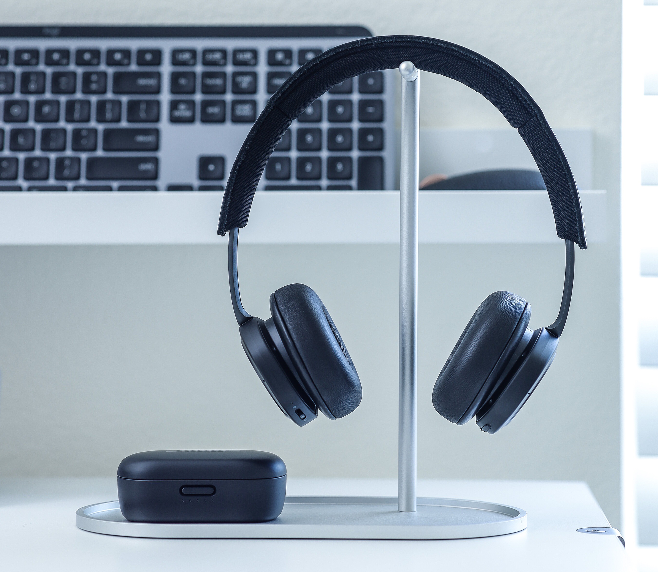 Designed to be the perfect home for your headphones, keeping them elevated and always within arm’s reach and a tray for your small pocket essentials - crafted in machined, anodised aluminium.